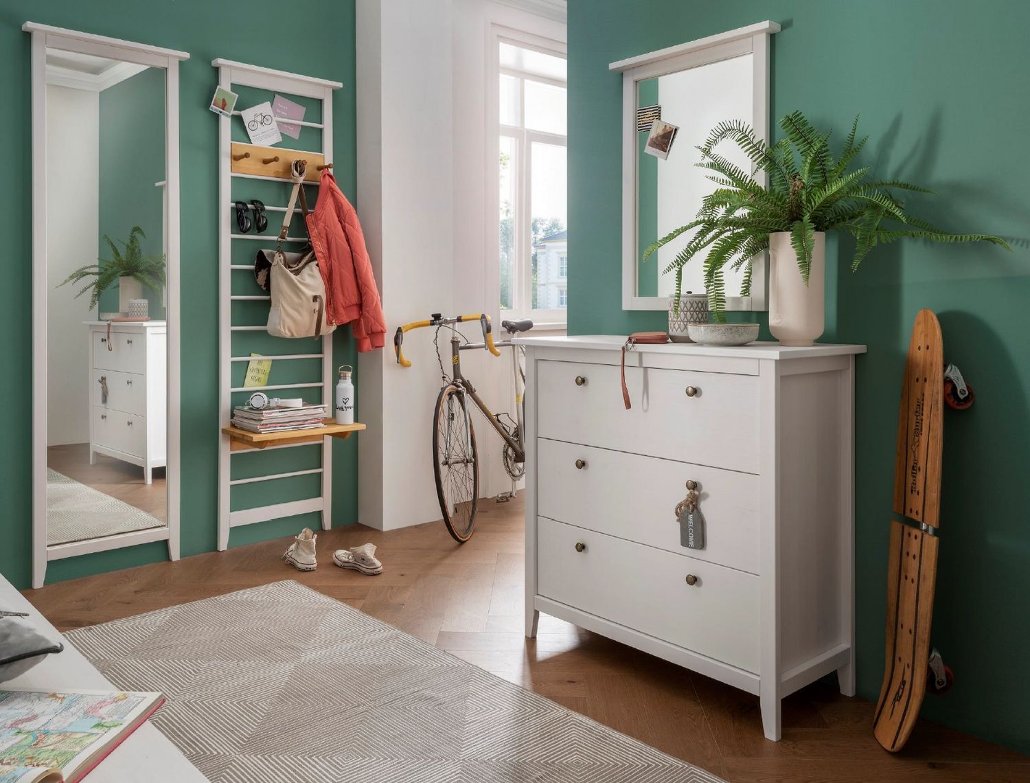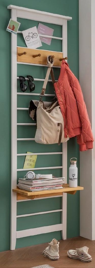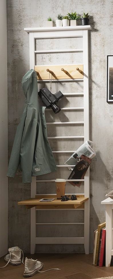 Rippenelement + Ablageelement + Hakenleiste Kiefer massiv Weiß und gelaugt