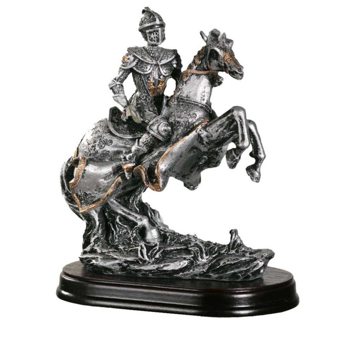 Ritter auf hochsteigendem Pferd mit schwarzen Sockel