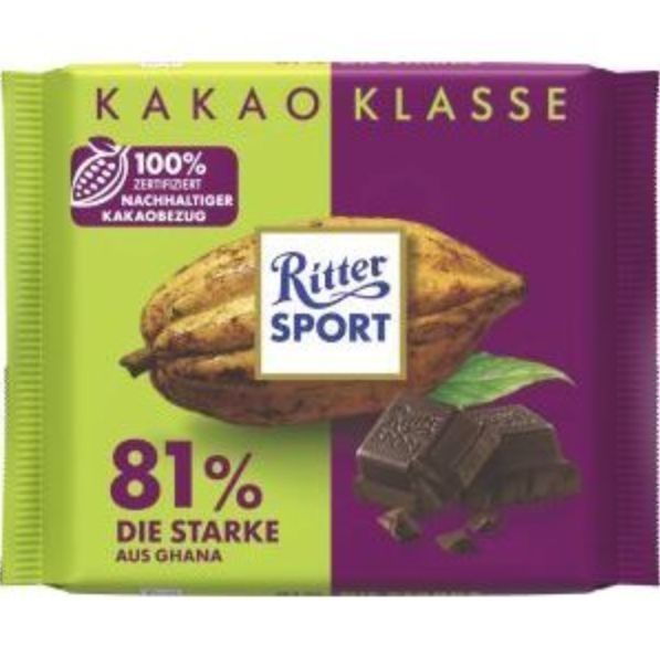 Ritter Sport Die Starke 81 % aus Ghana Schokolade 12x 100 g (Gr. Standardgröße)