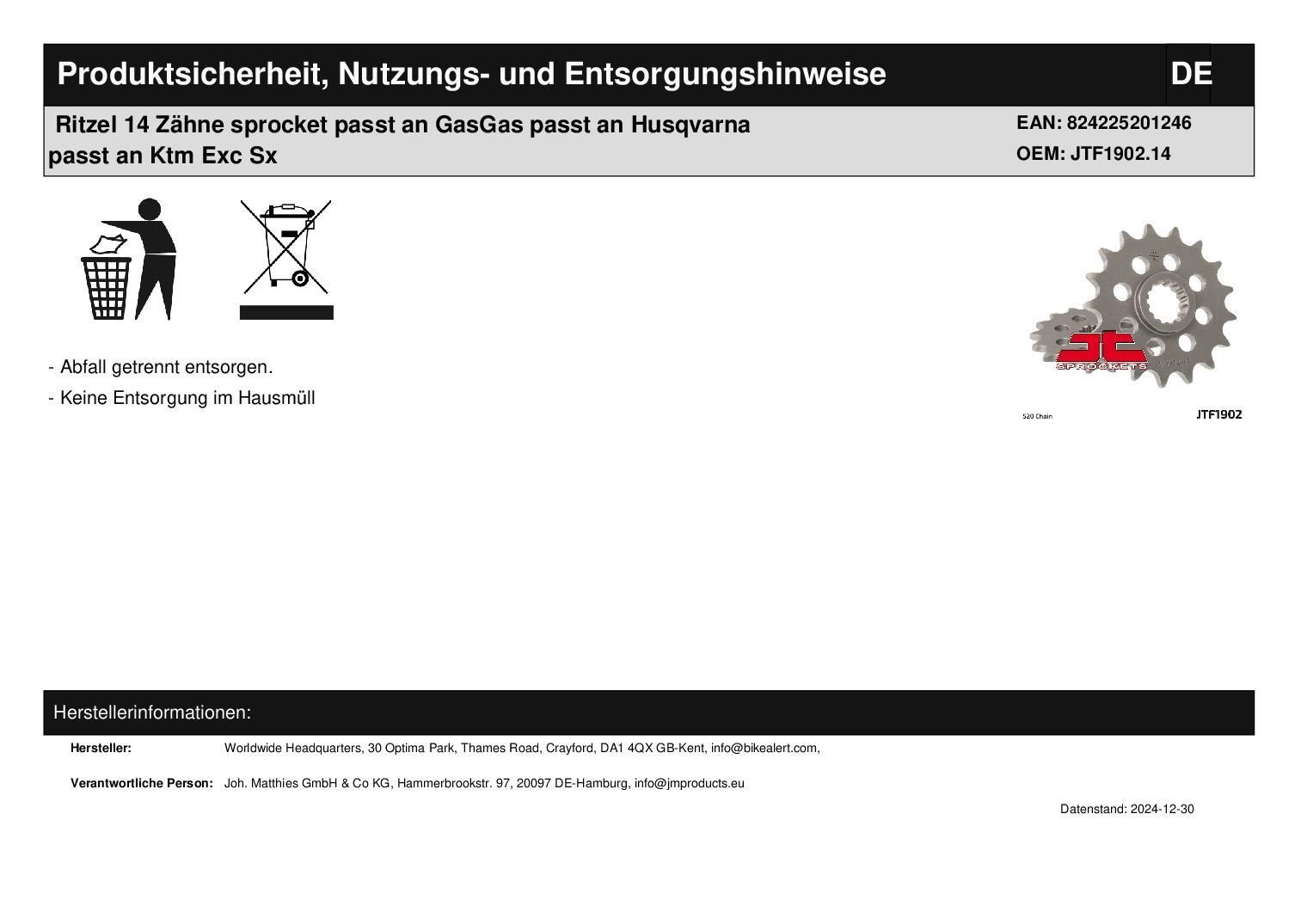 Ritzel 14 Zähne sprocket passt an GasGas passt an Husqvarna passt an Ktm Exc Sx