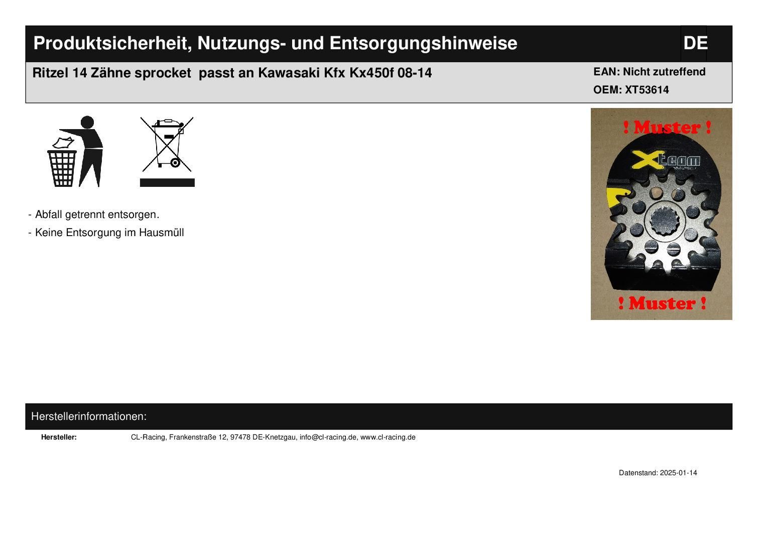 Ritzel 14 Zähne sprocket passt an Kawasaki Kfx Kx450f 08-14