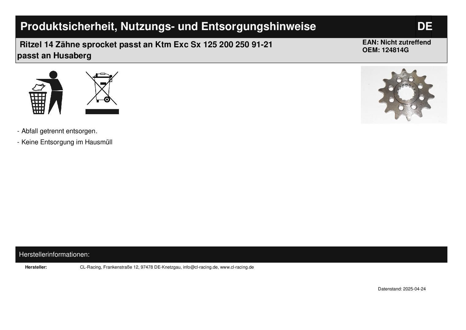 Ritzel 14 Zähne sprocket passt an Ktm Exc Sx 125 200 250 91-21 passt an Husaberg