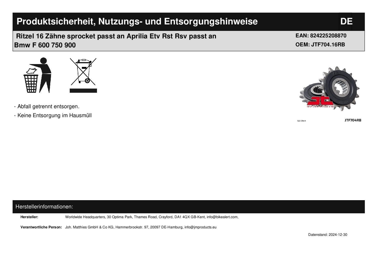 Ritzel 16 Zähne sprocket passt an Aprilia Etv Rst Rsv passt an Bmw F 600 750 900