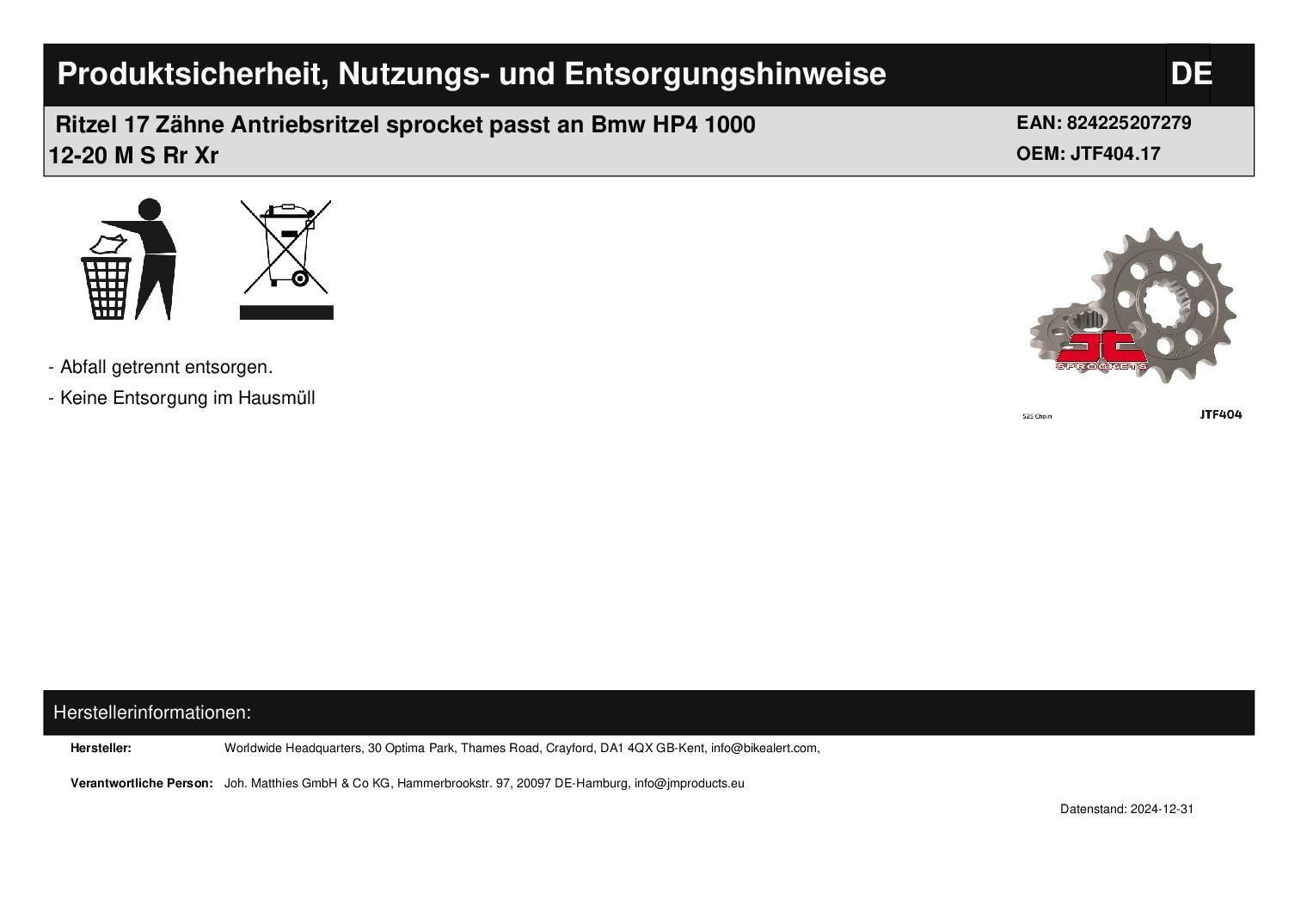 Ritzel 17 Zähne Antriebsritzel sprocket passt an Bmw HP4 1000 12-20 M S Rr Xr