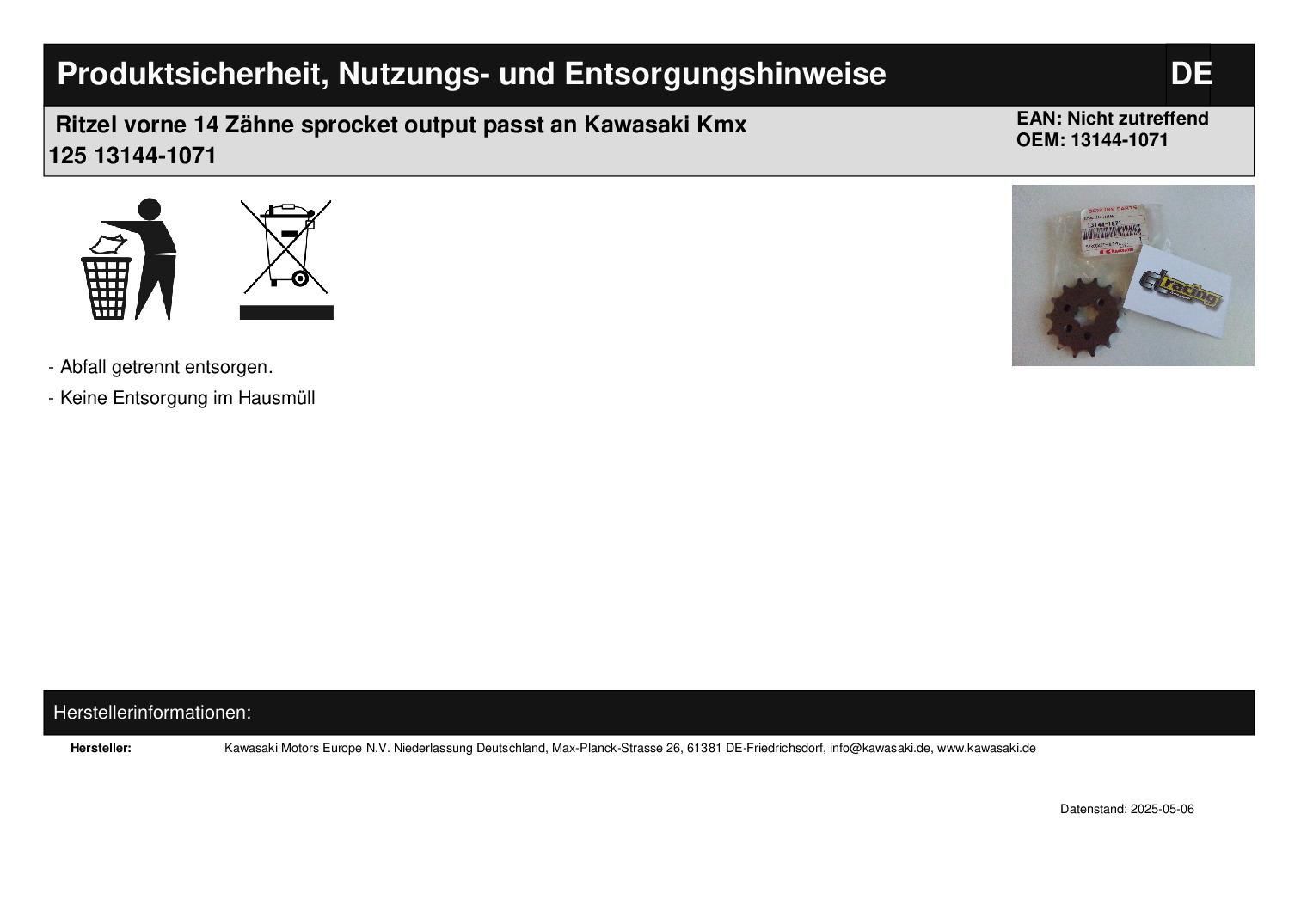 Ritzel vorne 14 Zähne sprocket output passt an Kawasaki Kmx 125 13144-1071