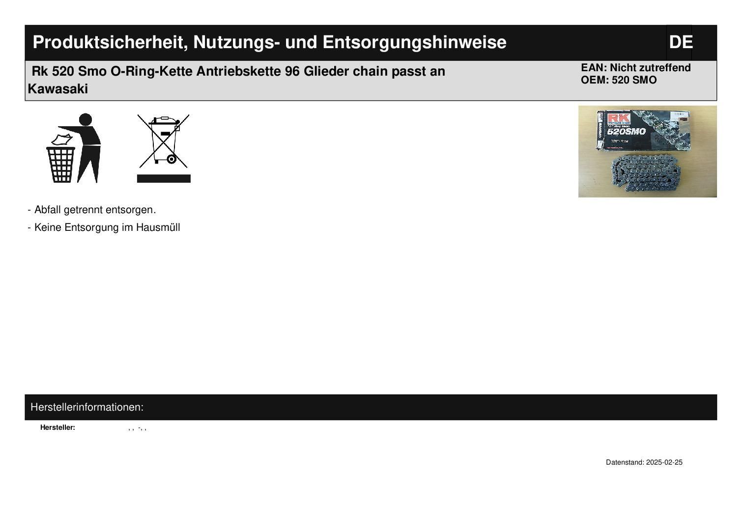 Rk 520 Smo O-Ring-Kette Antriebskette 96 Glieder chain passt an Kawasaki