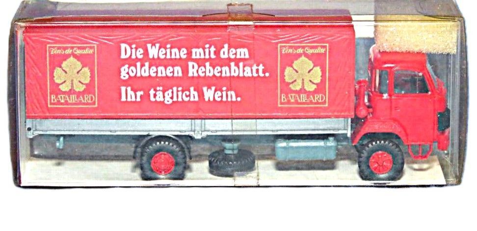 Hersteller: RMM Artikel: Saurer D 290 330 - Pritsche Maßstab: 1:87 Beschriftung: Die Weine mit dem goldenen Rebenblatt. Ihr täglich Wein. Originalverpackung: Ja (Da die Verpackung nicht Bestandteil dieses Artikels ist, wird der Zustand nicht näher beschrieben). Die Fotos sind Teil der Artikelbeschre