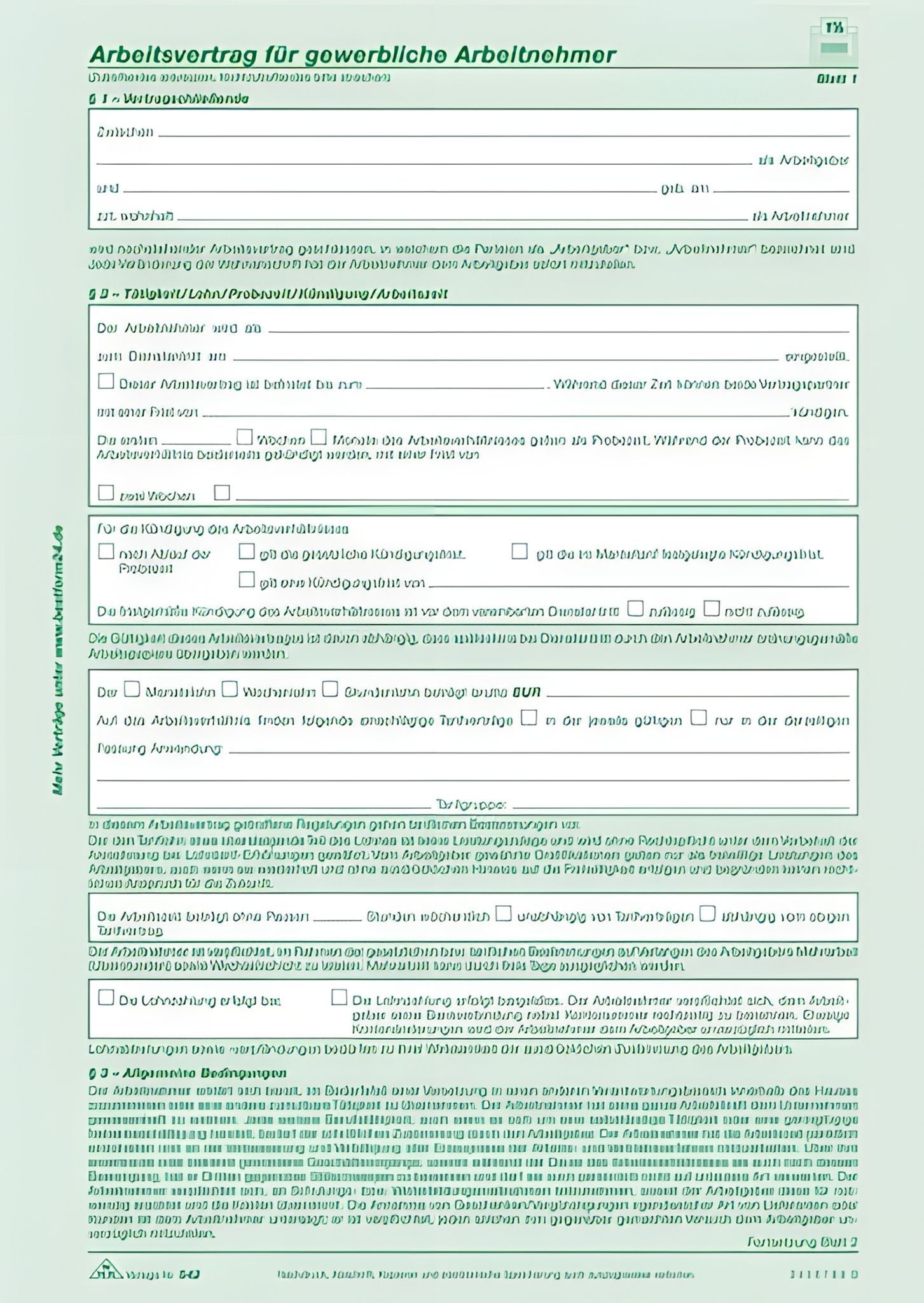 RNK Arbeitsvertrag DIN A4 SD 2x2Bl gewerbliche Arbeitnehmer