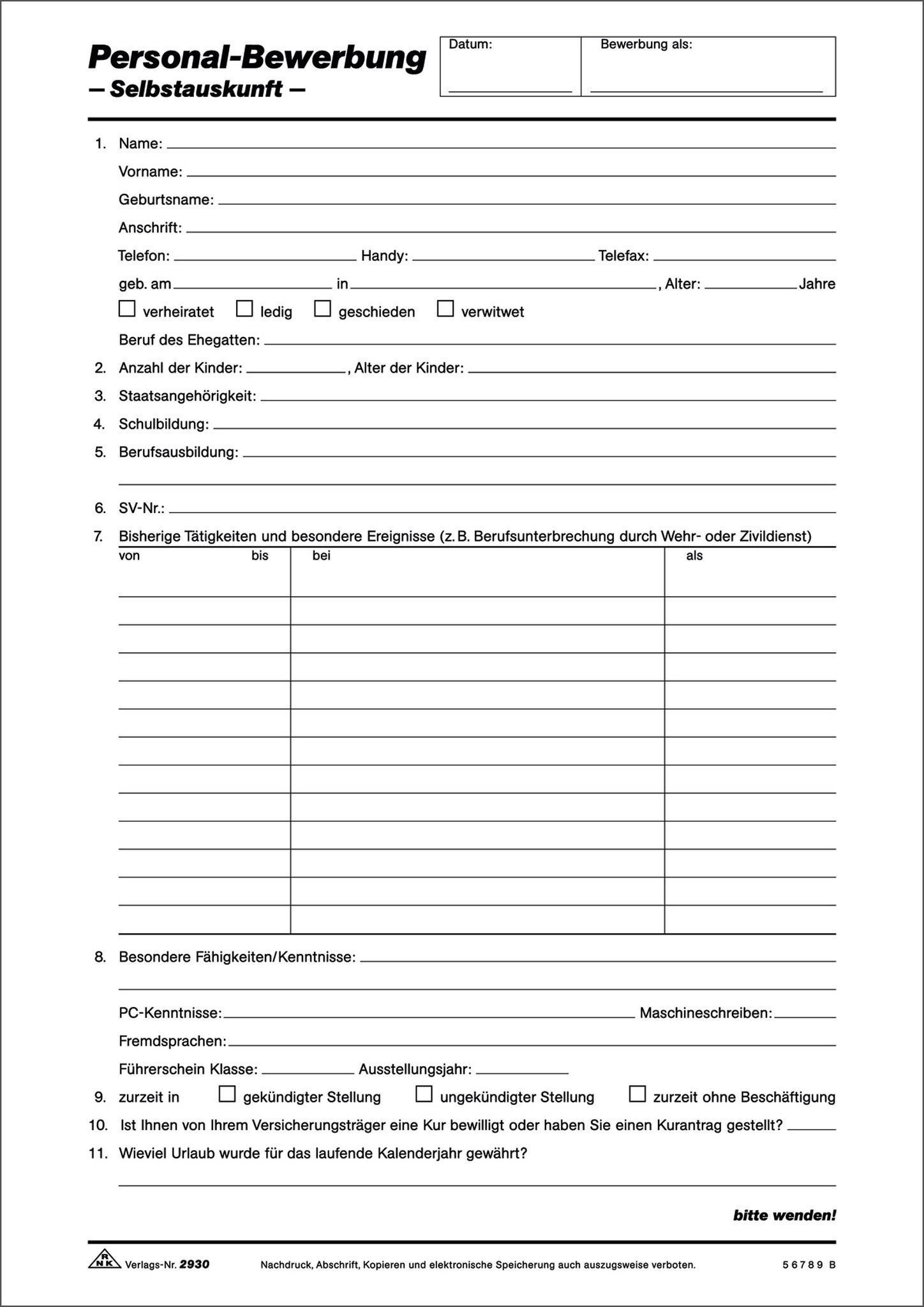 RNK Personalfragebogen A4 4002871293006