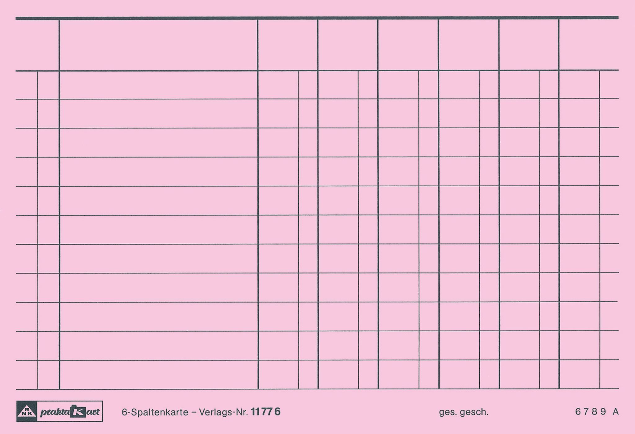 RNK Spaltenkarte 6 Spalten A6 rosa zu 100 Stück gepackt
