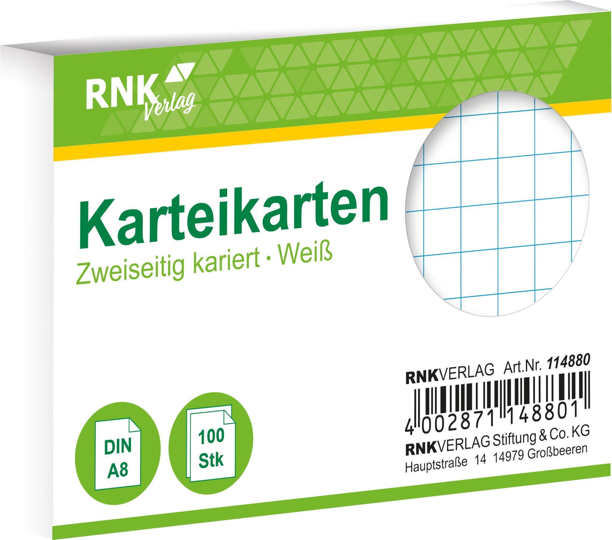 RNK Verlag 114880 Karteikarten - DIN A8, kariert, weiß, 100 Karten