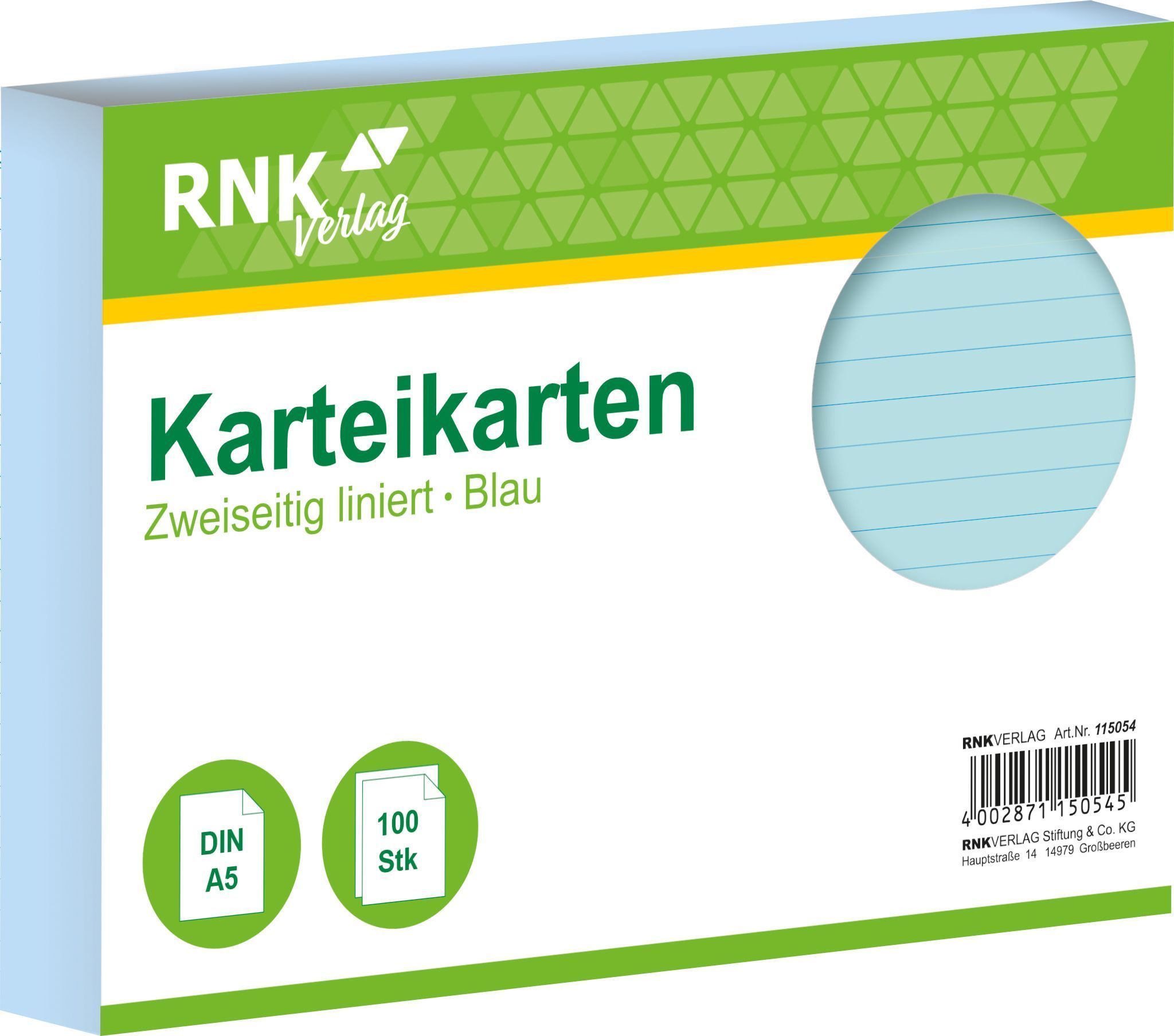 RNK Verlag 115054 Karteikarten - DIN A5, liniert, blau, 100 Karten