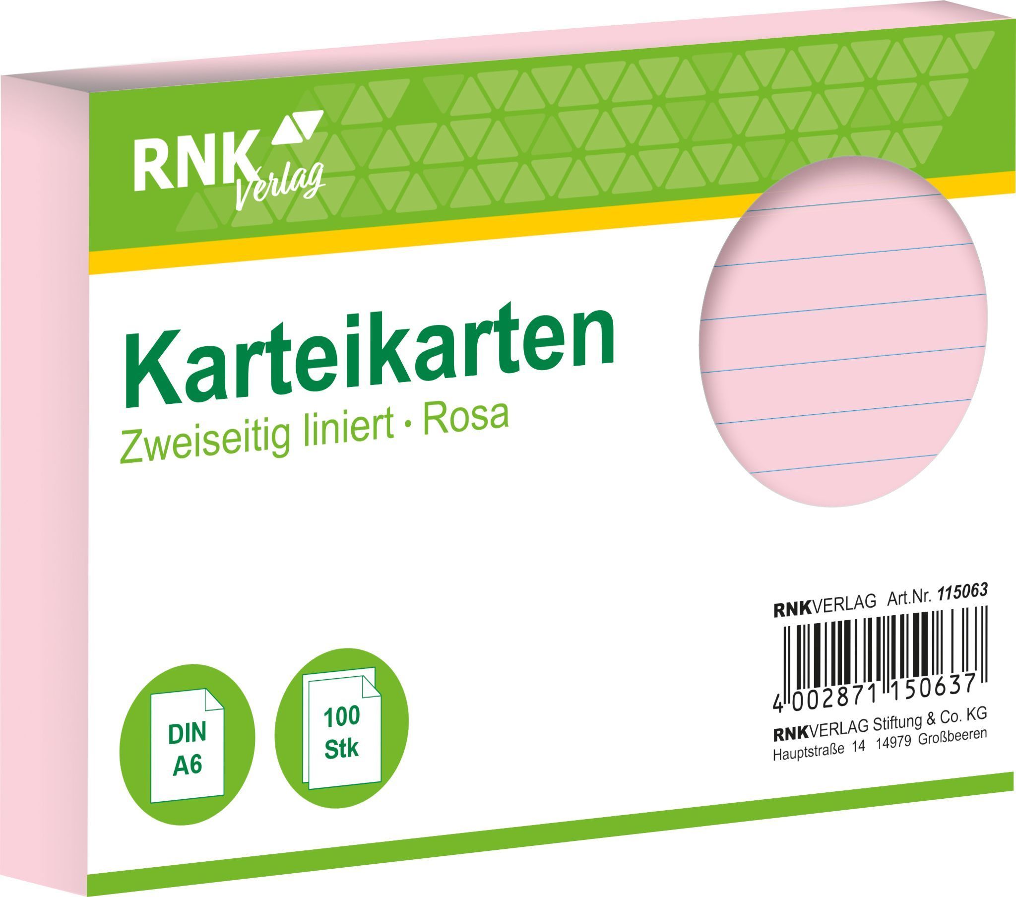 RNK Verlag 115063 Karteikarten - DIN A6, liniert, rosa, 100 Karten