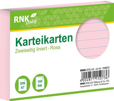 • RNK Verlag 115073 Karteikarten - DIN A7, liniert, rosa, 100 Karten