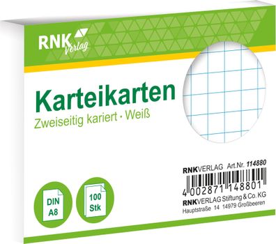 • RNK Verlag 114880 Karteikarten - DIN A8, kariert, weiß, 100 Karten