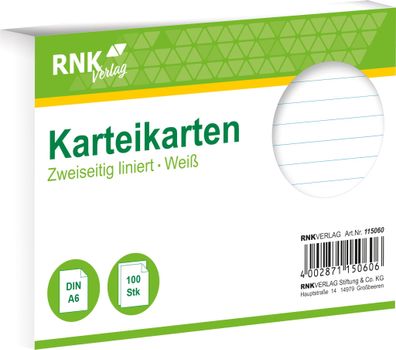 • RNK Verlag 115060 Karteikarten - DIN A6, liniert, weiß, 100 Karten
