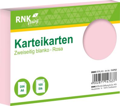 • RNK Verlag 114763 Karteikarten - DIN A6, blanko, rosa, 100 Karten