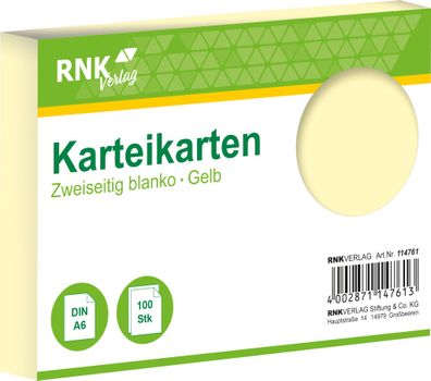 • RNK Verlag 114761 Karteikarten - DIN A6, blanko, gelb, 100 Karten