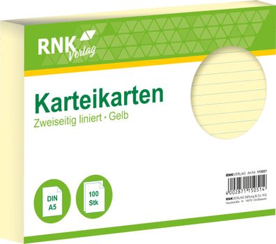 • RNK Verlag 115051 Karteikarten - DIN A5, liniert, gelb, 100 Karten