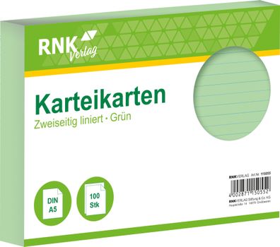 • RNK Verlag 115055 Karteikarten - DIN A5, liniert, grün, 100 Karten