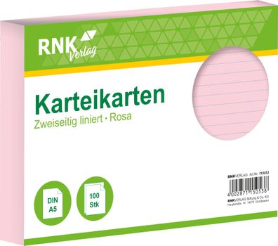 • RNK Verlag 115053 Karteikarten - DIN A5, liniert, rosa, 100 Karten