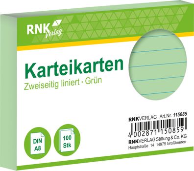 • RNK Verlag 115085 Karteikarten - DIN A8, liniert, grün, 100 Karten
