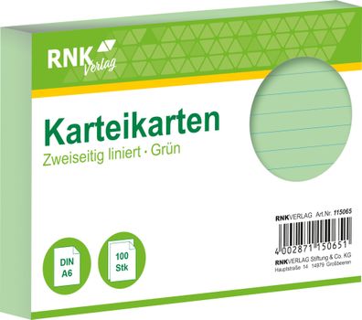 • RNK Verlag 115065 Karteikarten - DIN A6, liniert, grün, 100 Karten