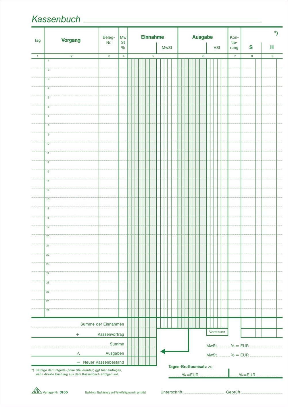 RNK Verlag 3155 Kassenbuch - mit Umsatzsteuererfassung - SD, 2 x 40 Blatt, DIN A4