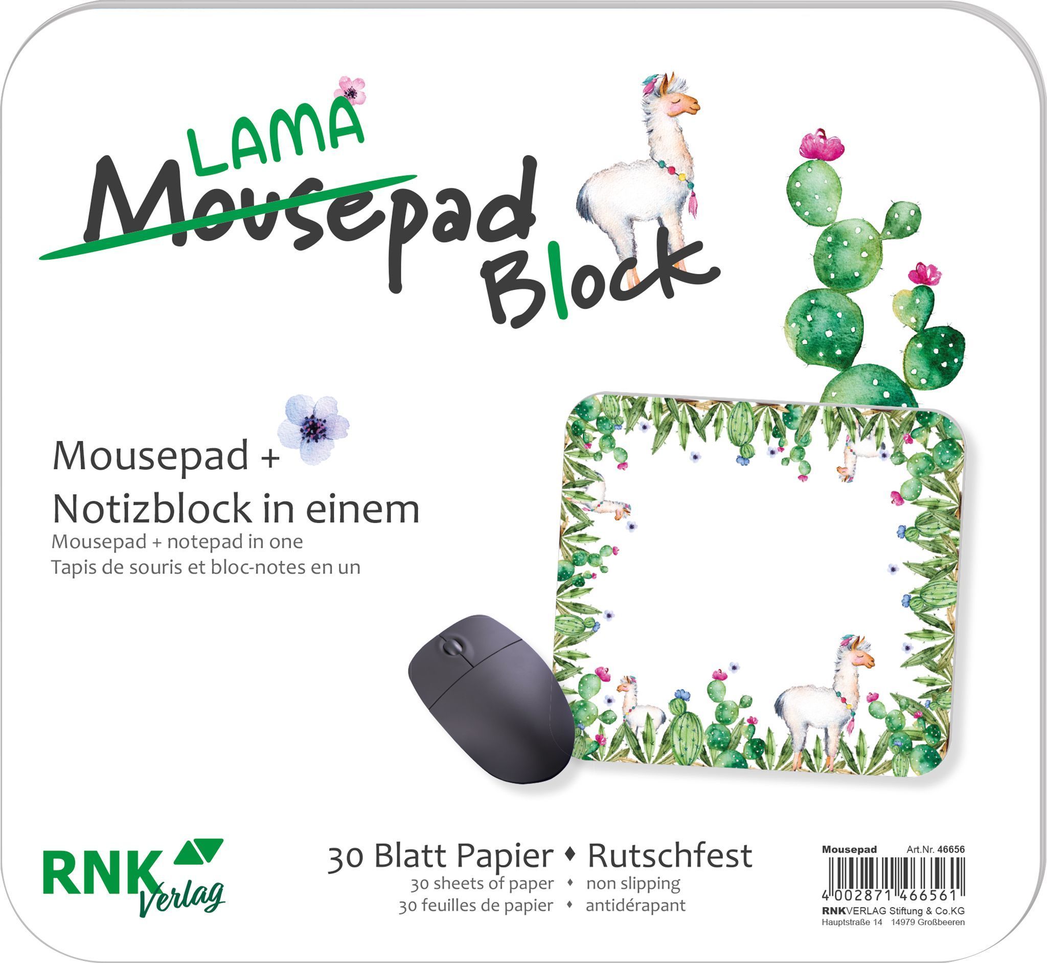 RNK Verlag 46656 RNK Verlag Mousepad Block "Lama", 240 x 220 mm, 30 Blatt