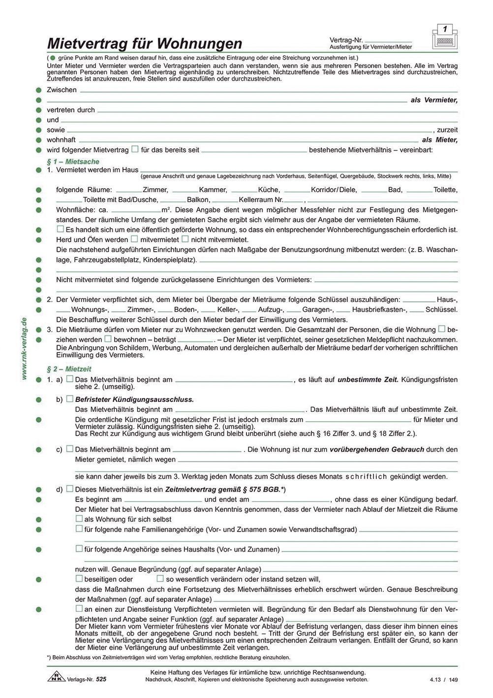 RNK Verlag 525/10 10er Mietverträge für Wohnungen - ausführliche Fassung, 6 Seiten, D