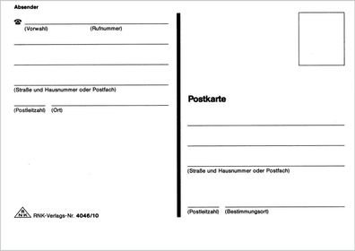 • RNK Verlag 4046/10 Postkarte mit Absender, A6, 1 Block mit 10 Stück