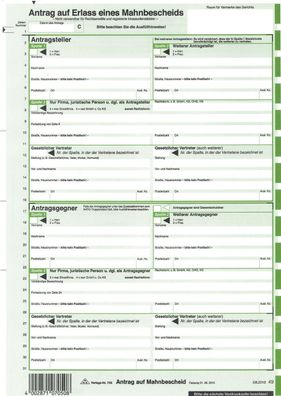 • RNK Verlag 705/10 Anträge Mahnbescheid - SD, alle Bundesländer, 2 x 2 Blatt, 210mm x