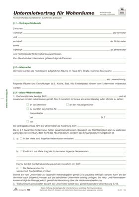 • 10x RNK Verlag 520 Untermietvertrag für Wohnräume, 4 Seiten, gefalzt auf DIN A4