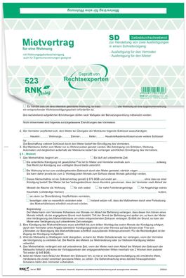 • RNK Verlag 523/10 Universal-Mietvertrag für Wohnungen - SD, 3 x 2 Blatt, DIN A4, 10 S