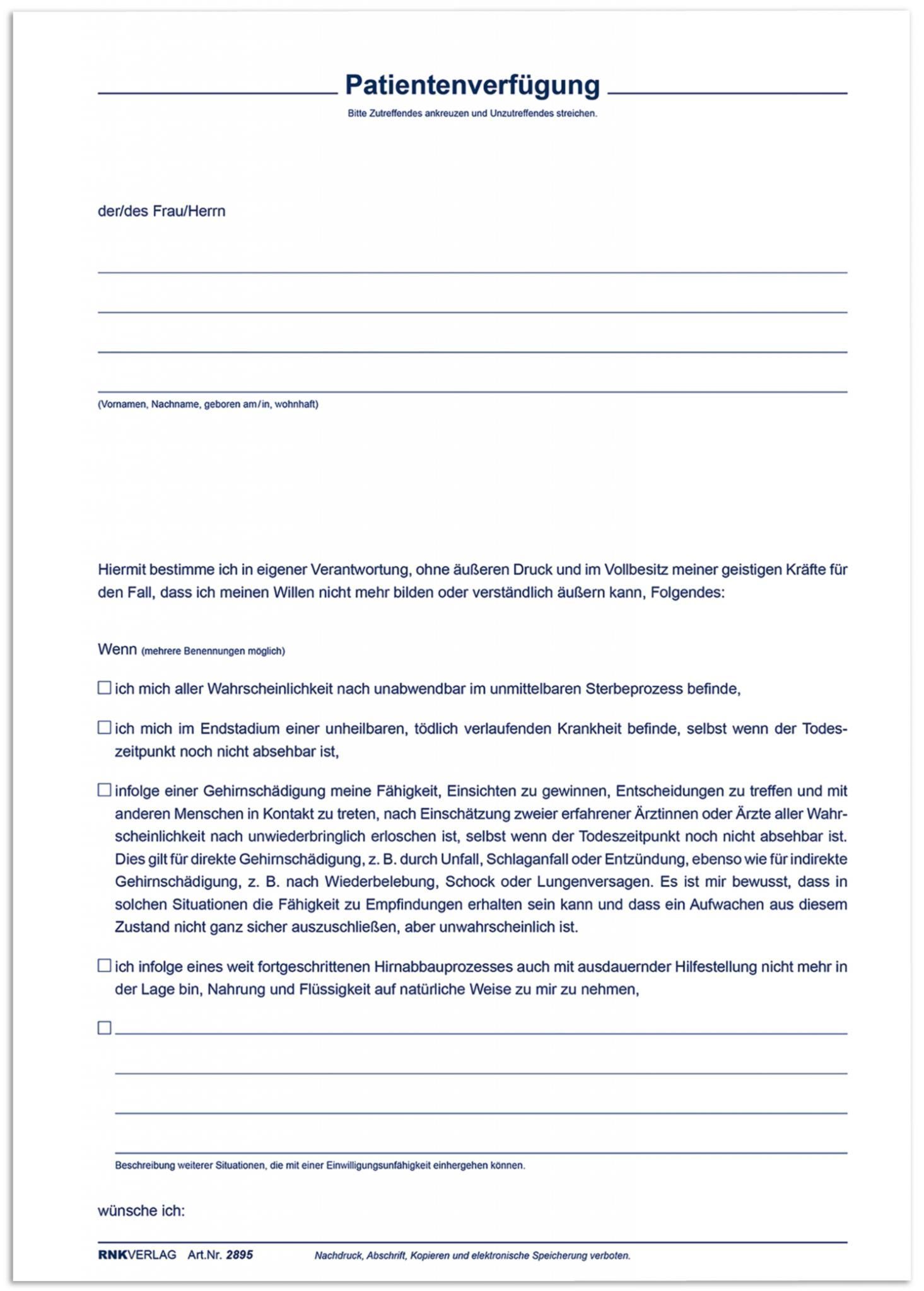 RNK Verlag Vorsorgemappe Meine Patientenverfügung 1 Person