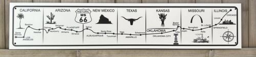 Road Map Schild 60x12 cm: Route US 66 - get your Kicks on Route 66 IL CA TX OH