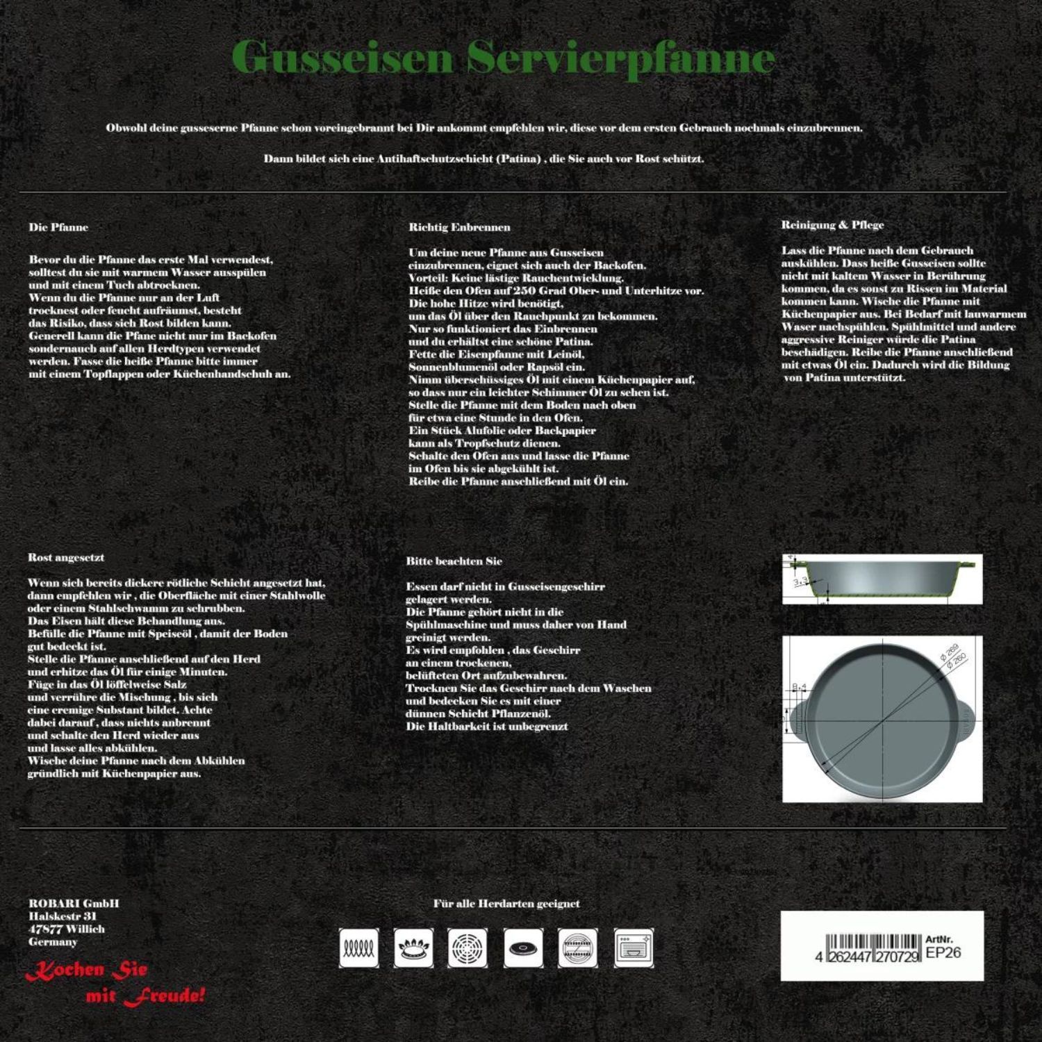 ROBARI Schmorpfanne Servierpfanne aus Gusseisen 28 cm Emailliert grün