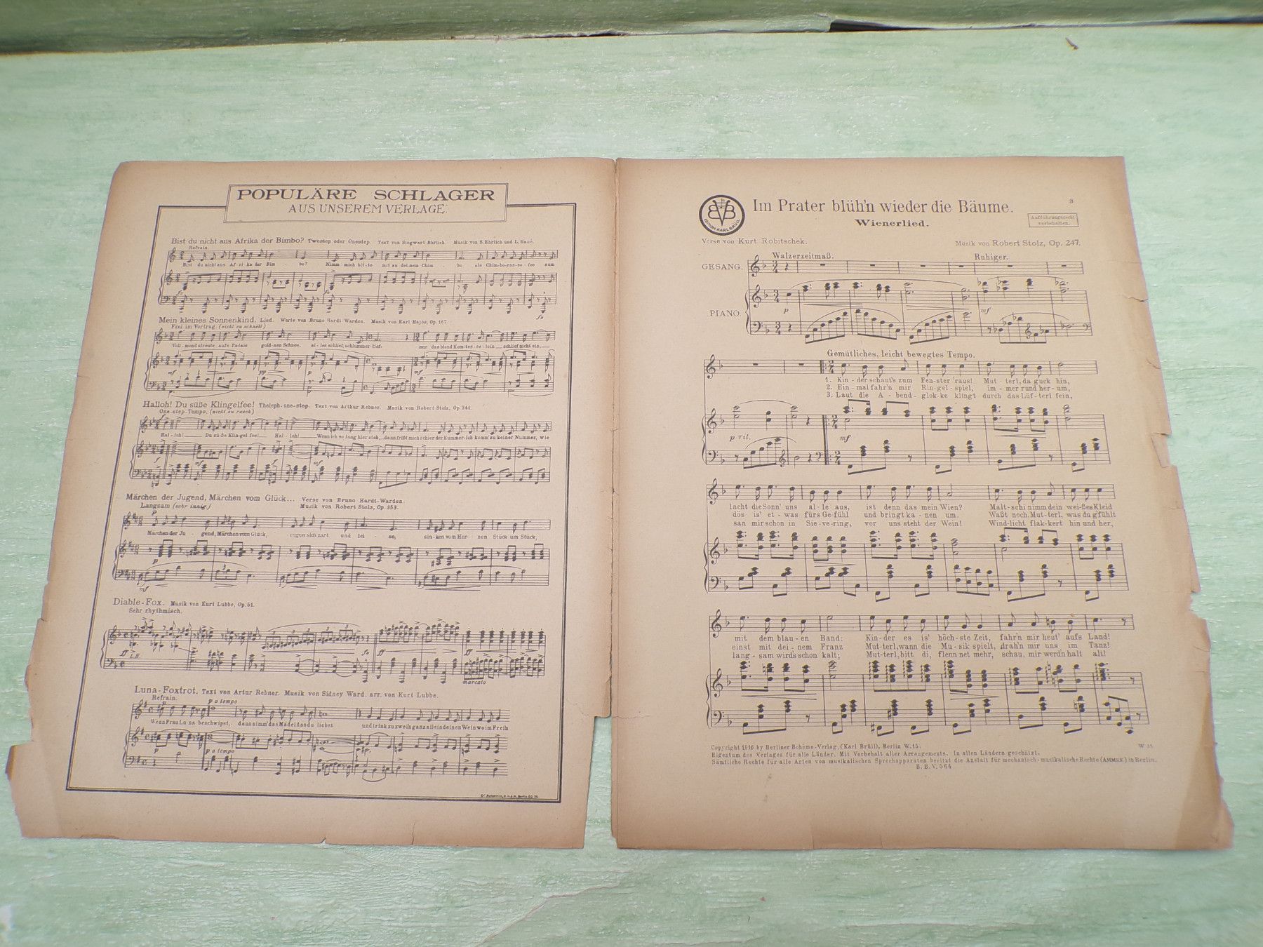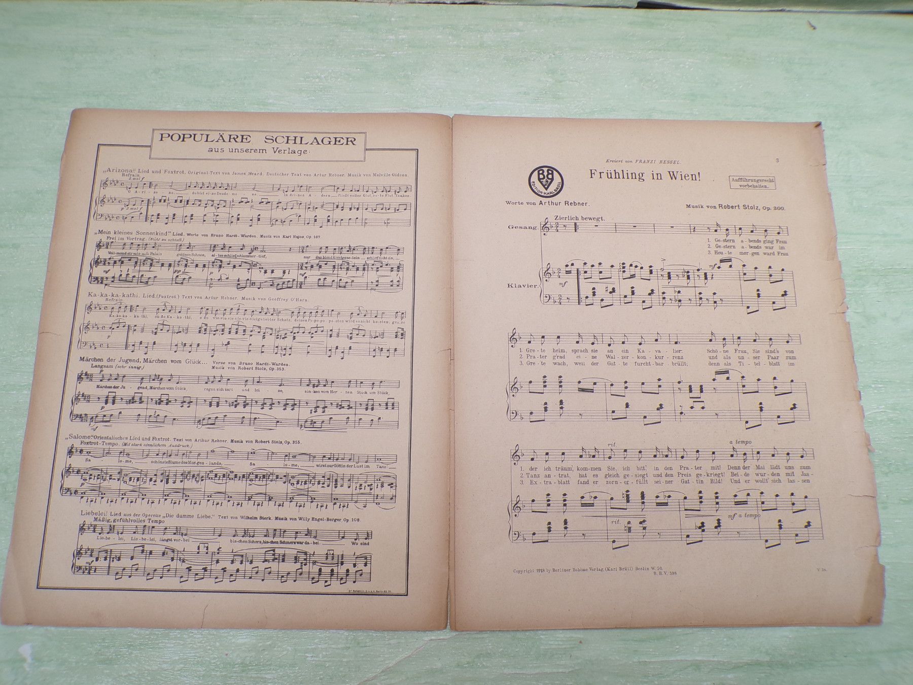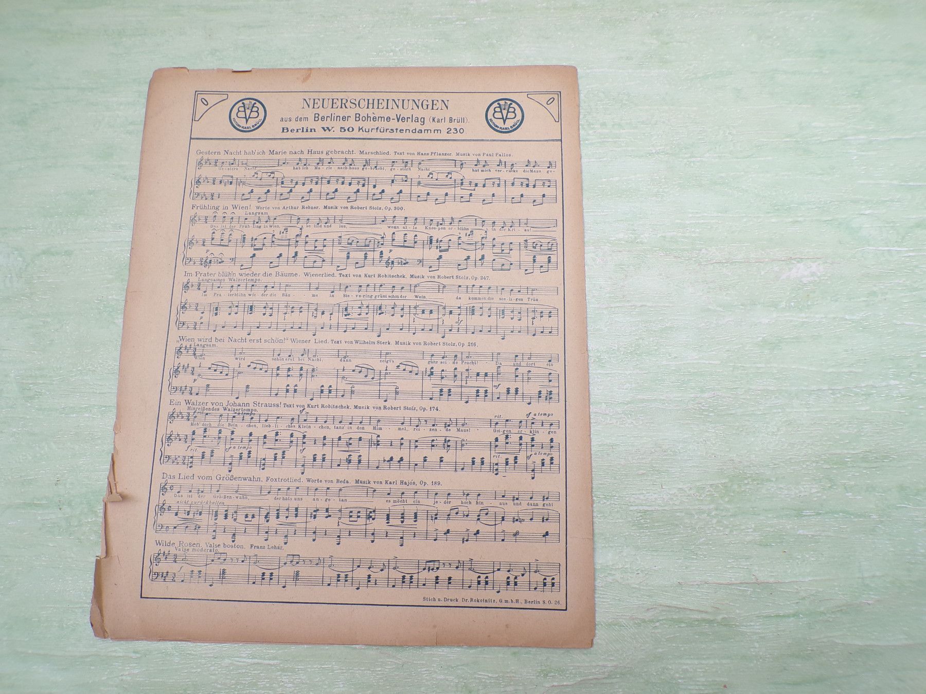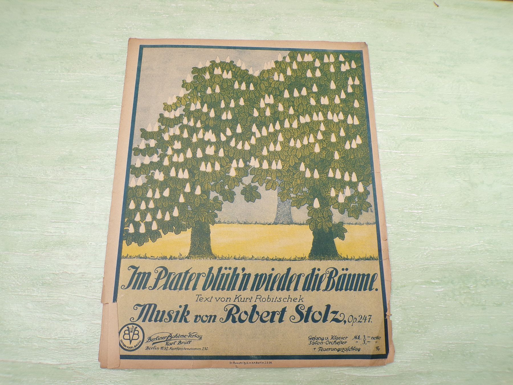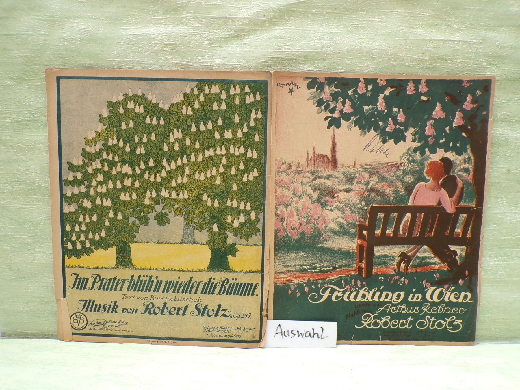 ... Erinnerungen ..... Robert Stolz . Edition Karl Brüll Berliner Boheme Verlag Stich und Druck Dr Rokotnitz GmbH , Berlin je ca 34x27cm Noten & Text . -Auswahl- : Im Prater blühn wieder die Bäume & populäre Schlager aus dem Verlag : 1. Seite & Neuerscheinungen aus dem Verlag : 6. Seite