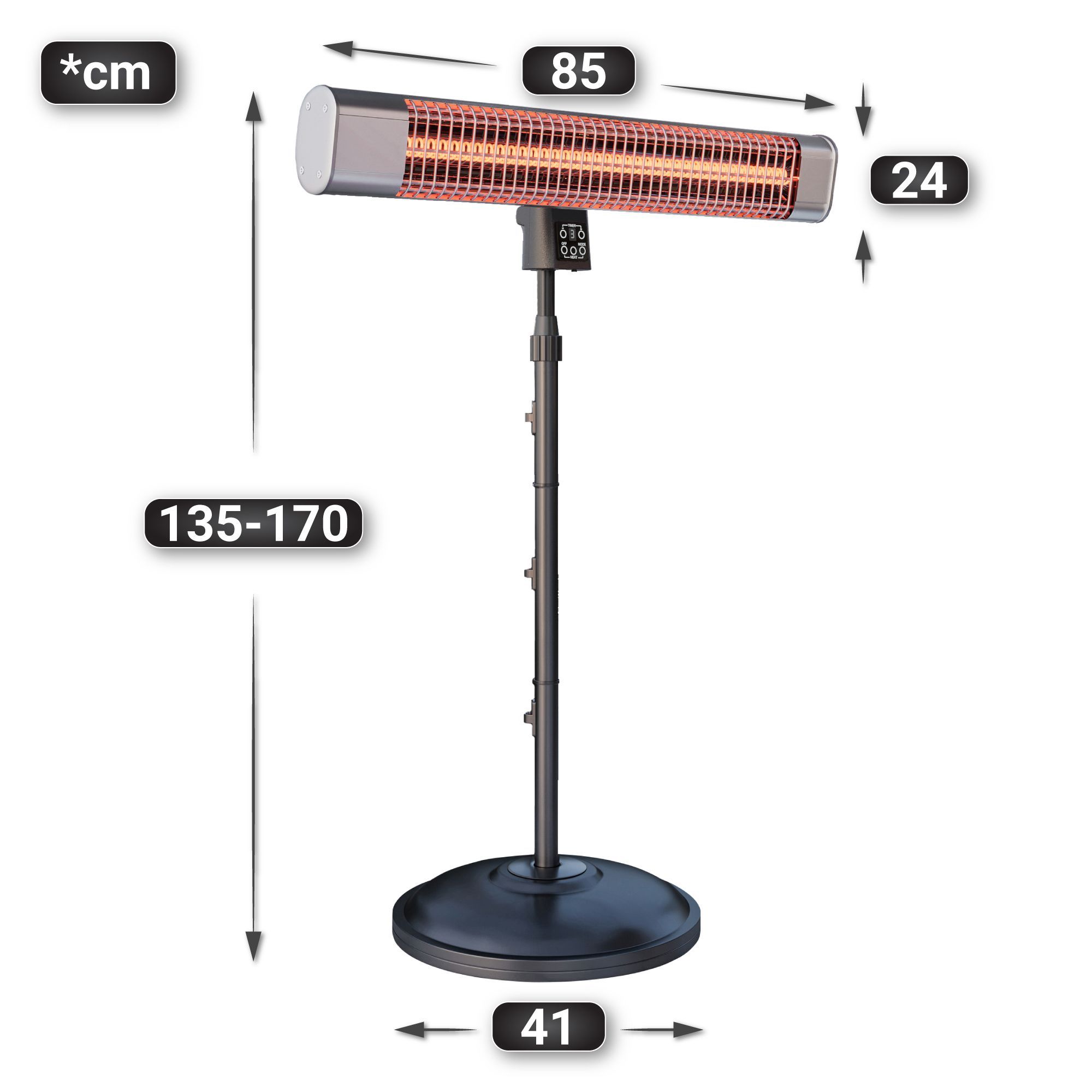 Roberto | Stand Heizstrahler | Edelstahl | 2400W | 3 Heizstufen | Infrarot Wärmestra