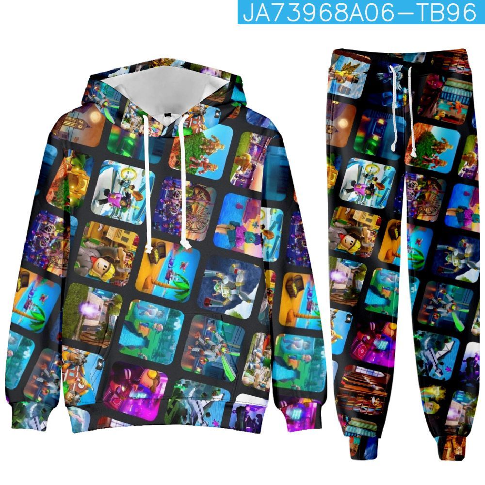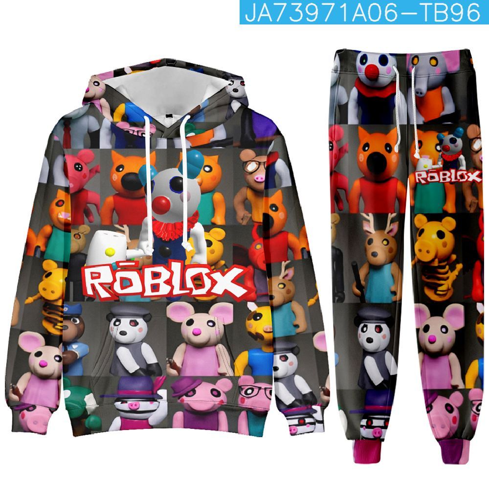 Roblox 2er Sportanzug Jungen Puppen Piggy Druck Hoodied Hose Kinder Sweatshirt Pants