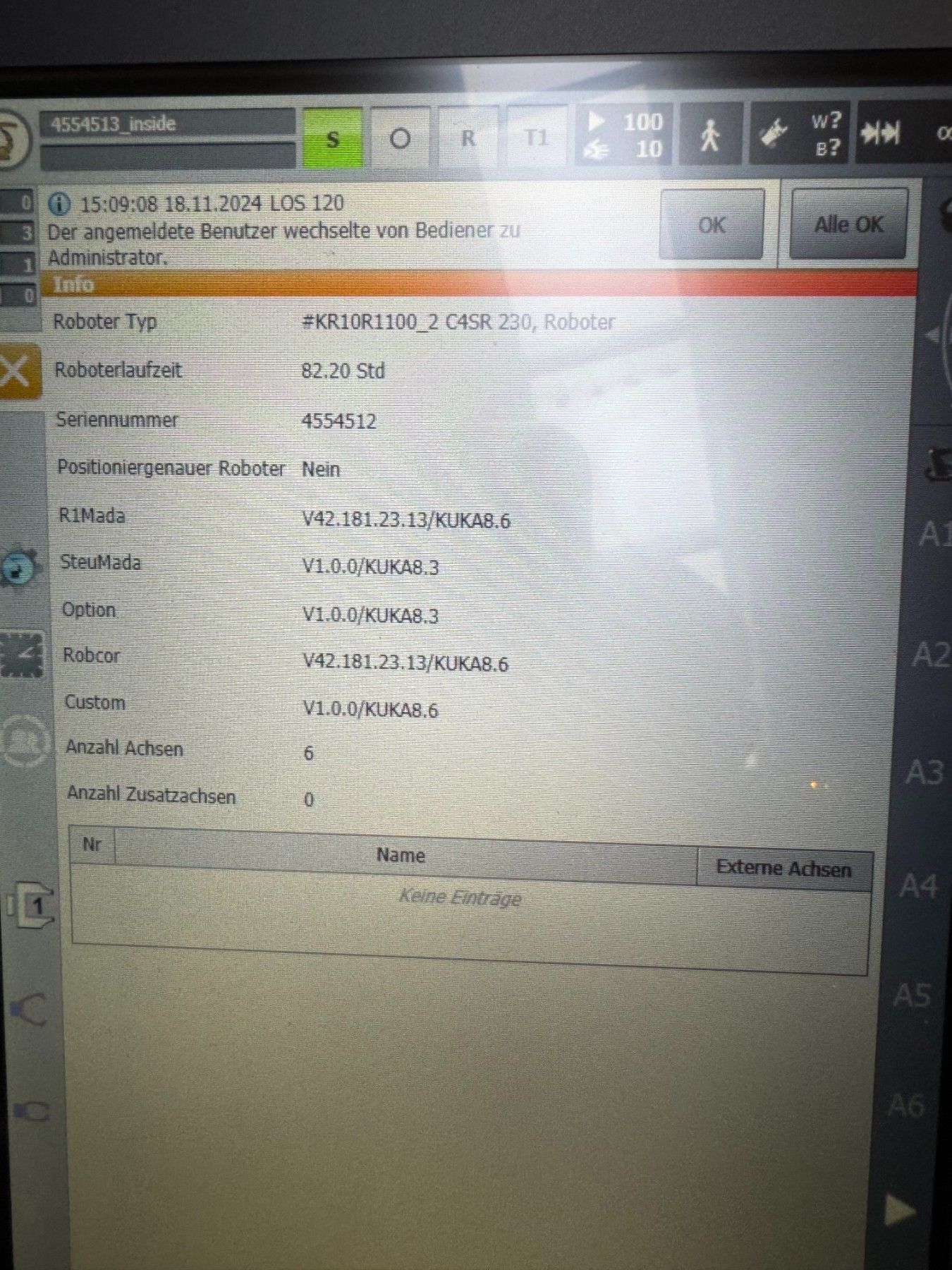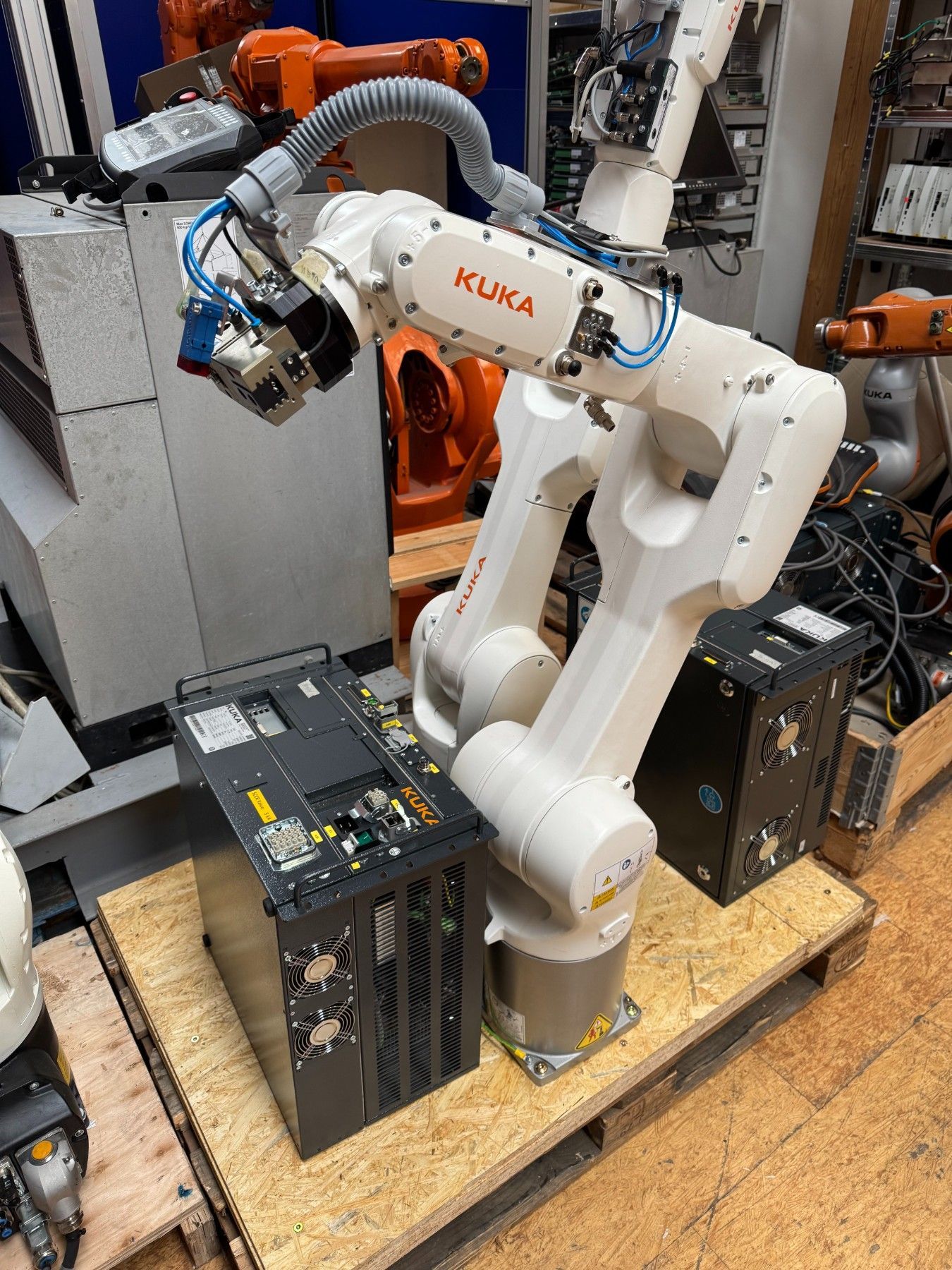 Roboter KUKA KR10 R1100-2 SEL KRC4 2 Stück vorhanden 1x 135 und 1x 82 Betriebsstunden Baujahr: 10 2021 Anzahl der Achsen: 6 Max. Traglast: 6 Kg Max. Arbeitsbereich: ca. 1100 mm Lieferumfang: Roboter, Steuerung, Kabel, Teach-Panel 2 Wochen Inbetriebnahmegarantie. Keine weitere Gewährleistung. Darüber... Mehr