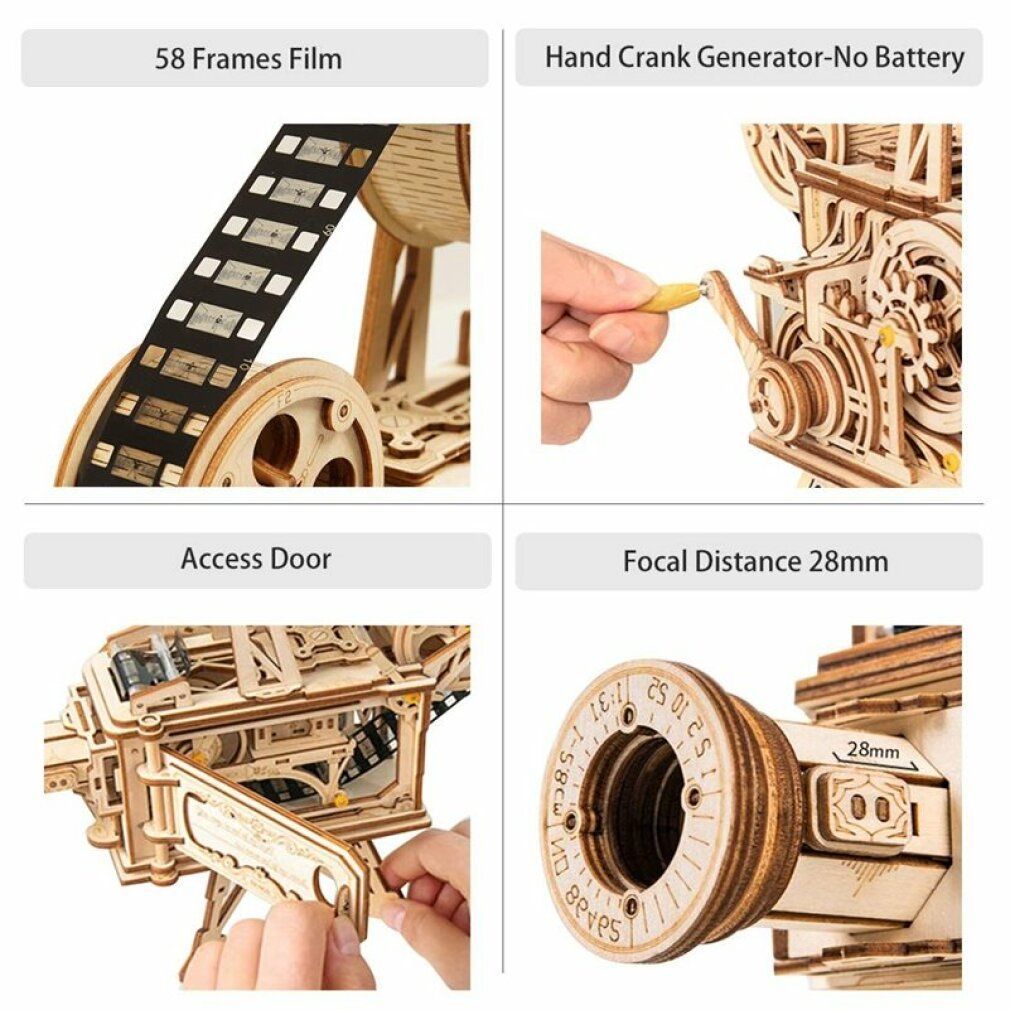 Robotime Rokr 3D-Holzpuzzle Mechanischer Filmprojektor 183 Teile