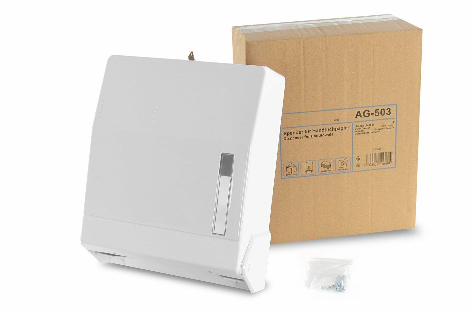 Robuster Papierhandtuchspender für ca. 600 Blatt, Kunststoff, weiß, abschließbar