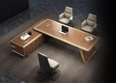 Robuste Braune Bürogarnitur Edler Schreibtisch Sideboard Couchtisch