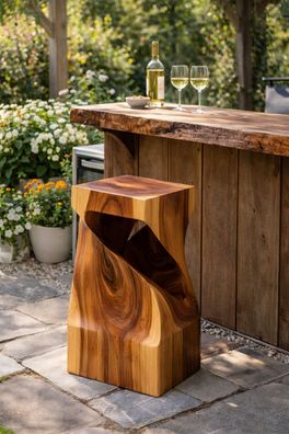 Robuster Brauner Barstuhl Designer Naturholz Exklusiver Einsitzer