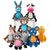 blauer Elefant, orange Fuchs, rosa Schwein, grüner Frosch, blaue Maus, braun Kleiner Bär, braun Elch, Grau Waschbär