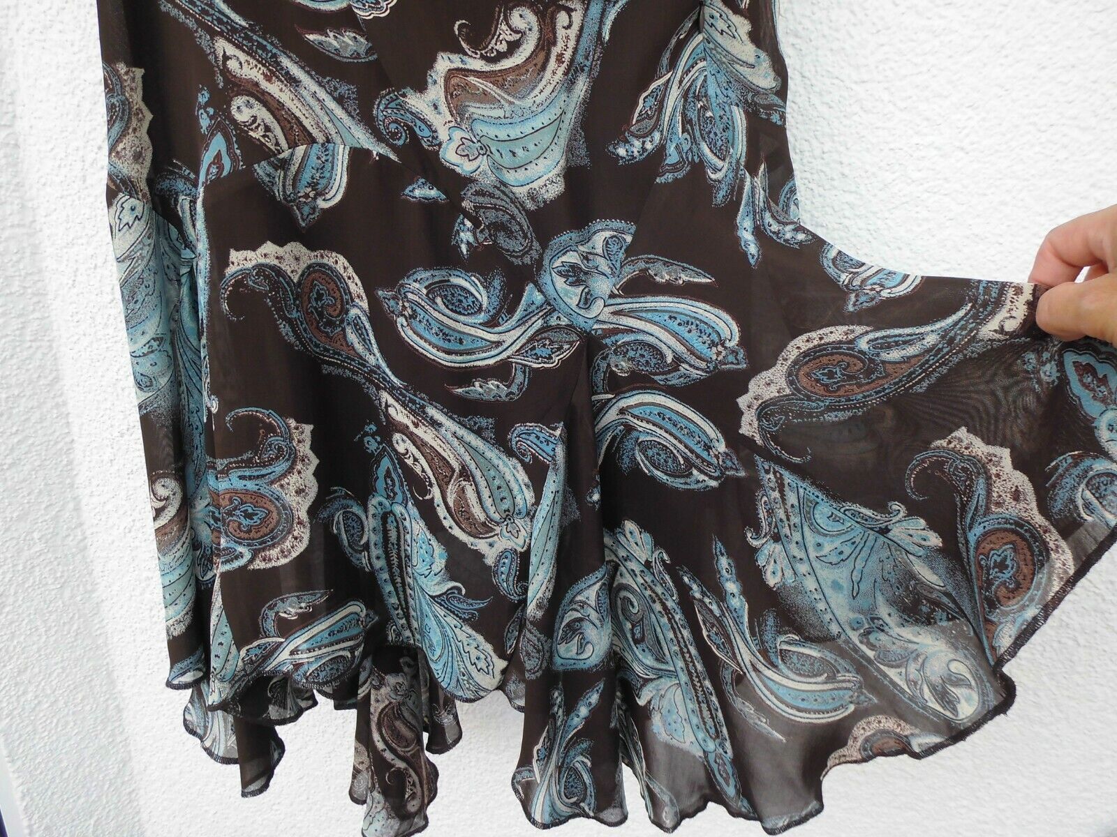 Normal 0 21 ROCK Gr.38 von C&A Yessica Braun&Blau gemustert Knielang Asymmetrisch Neu mit Etikette 100% Polyester an der Seite Reißverschluss Taille - 37 cm (74cm) Hüfte ca 48 cm (96cm) - für mich zu klein (meine Massen zum vergleich - Brust 99cm; Taille 87cm; Hüfte -102 cm) Verkauf von Priv