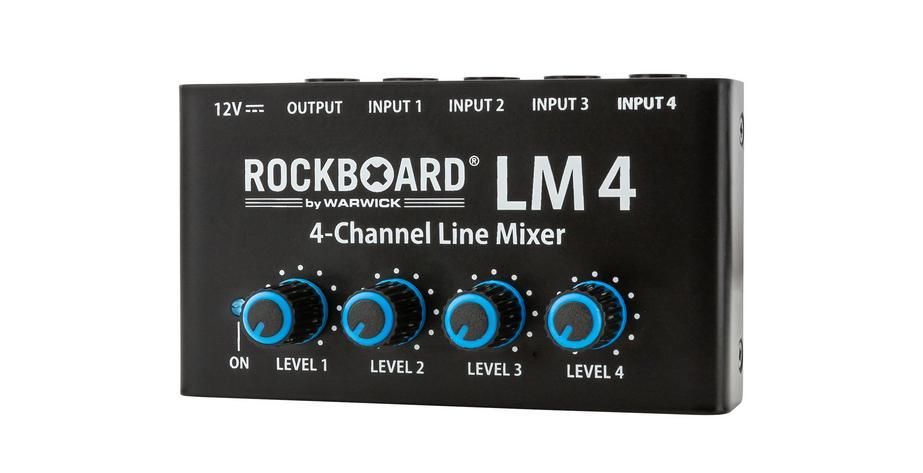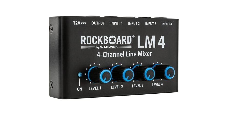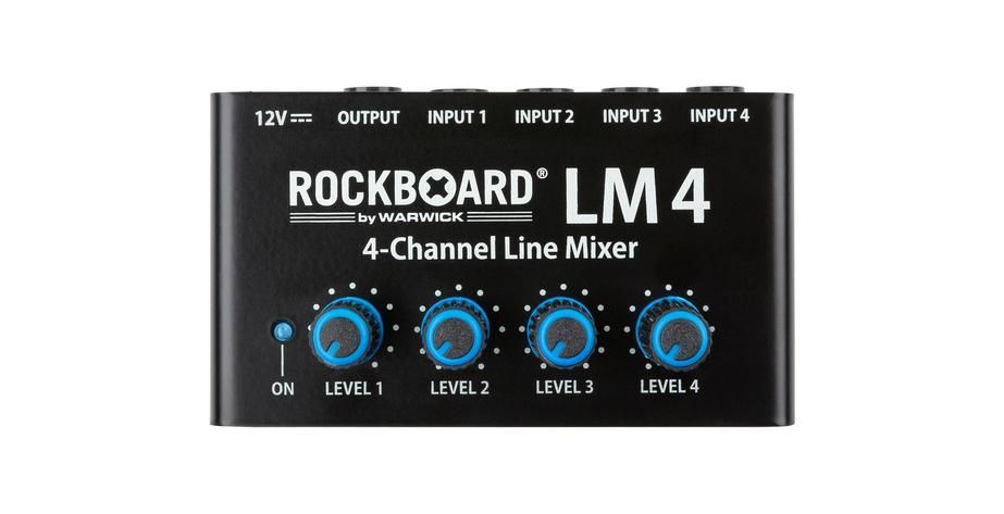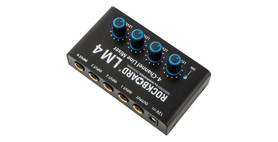 RockBoard LM 4 kompakter Mixer für Bühnen- und Studioanwendungen vier separate Verstärker separate Lautstärkeregelung für jeden Eingang beste Klangqualität bei allen Lautstärken hochwertige Komponenten und robuste Bauweise mit Metall-Gehäuse 12 VDC 20 mA Netzteil im Lieferumfang enthalten 2,1 x 5,5