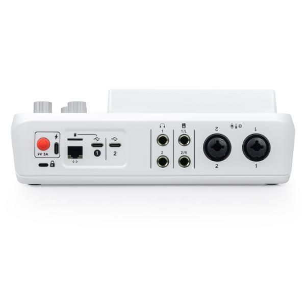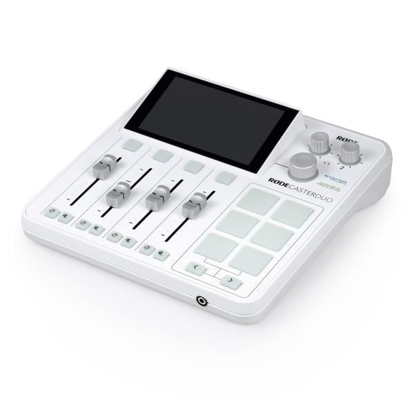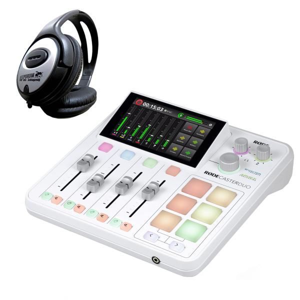 Rode Rodecaster Duo Station Weiss mit Kopfhörer