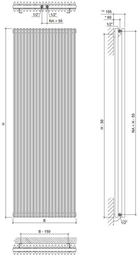 Röhrenradiator Aurora Mittelanschluss vertikal anthrazit Heizkörper Heizwand
